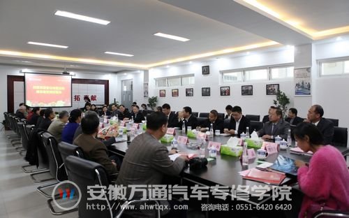 1日,由省政府参事室党组成员、副主任蒋兆晴,省政府参事室副主任朱新中,省政府办公厅副巡视员、省文史馆副馆长余家林,省政府参事室副巡视员周素萍等省政府各馆(室)领导、参事及其工作人员组成的17人调研小组至安徽万通汽车专修学院调查指导工作,新华集团董事长吴俊保、新华教育集团副总经理沙旭、安徽万通汽车专修学院院长张荣全等陪同参观并举行调研会议。