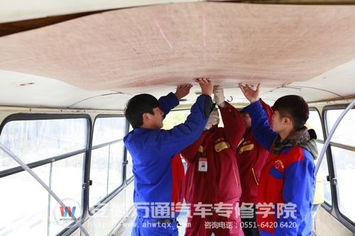 改装战队成员依然延续了梦想之车的豪华阵容,由安徽万通汽车专修学院资深教师姚永高、杨久柱老师带队,集合了潘小兵、赵晓松、武明、龚英顺等一众实力干将。记者在改装现场看到,老师学生们正干得热火朝天。小组成员分为三批,分头进行车身平复、发动装置的清洗以及车厢顶部的改装,各自带队老师边学生操作边进行讲解,这种理实一体手把手的教学方式变“普通课堂教学”为“创设情境教学”,变“教师单边教学”为“师生互动教学”,激发学生热情,深受学生喜爱,乐在其中是对他们学习状态好的描述。