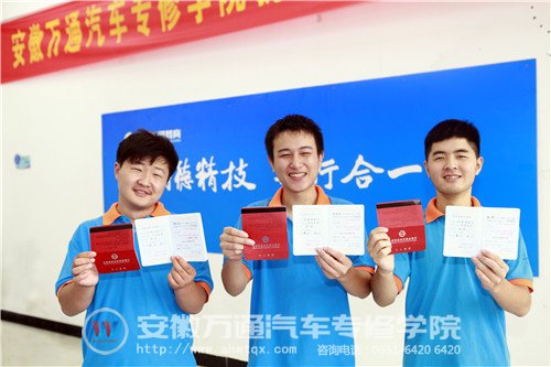就业技能培训补贴是合肥市33项民生工程之一,安徽万通汽车专修学院凭借多年规范办学、诚信办学的结果荣获“合肥市就业技能培训定点机构”,是新站区唯一一家专业汽修培训定点机构,经培训考试合格后的学生可领取由政府出资的700-1200元不等的补助。我院凭借强大的师资力量和实战实训的教学模式,考试合格率达100%。