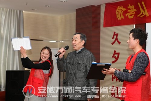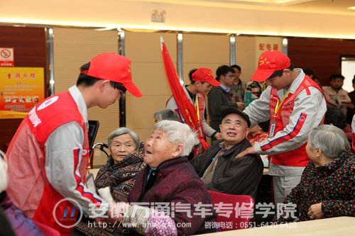 为深入开展雷锋月活动,增强学生的社会责任意识,进一步弘扬中华民族敬老爱老的传统美德,强化青少年学生尊老爱老意识,3月23日下午,安徽万通汽车专修学院青年志愿者协会联合职教城青年志愿者联合会来到新站区九久夕阳红老年城开展敬老爱老活动。