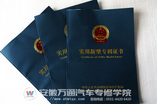近日,安徽万通汽车专修学院再获三项国家专利,分别是遮盖练枪台架、便携式四轮定位装置和自动变速器360度教学演示台架。