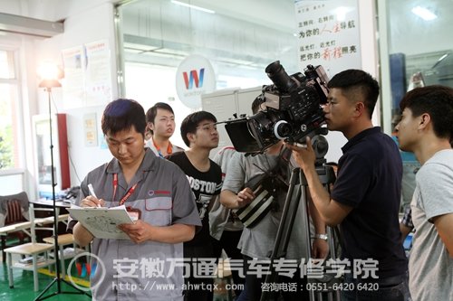 摄制组在奔马奥实训室里补拍同学们日常上课场景