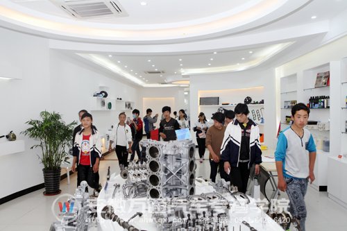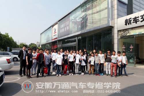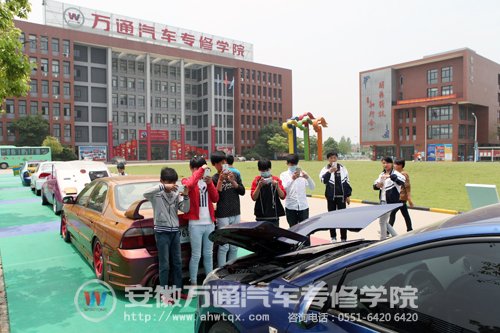 14日上午,同学们乘坐大巴车抵达安徽万通汽车专修学院后,咨询师热情地同学们前往校园参观,并随行做详细解释。咨询师先后同学们参观了奔马奥实训室、星科智能化实训中心、汽车美容实训室、钣金实训室等实训区域。同学们第一次如此近距离的接触汽车零件,都非常新奇,遇到喜欢的改装车,都纷纷停下来合影留念。