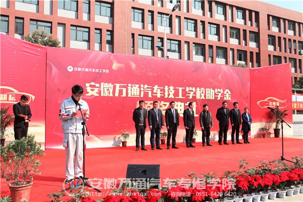 2017年2月12日,安徽万通汽车技工学校2017年助学金颁奖典礼在校隆重举行。安徽万通汽车技工学校校长张俊良,副校长廖光宙等领导,与全校师生一起见证这激动又荣耀的一刻。