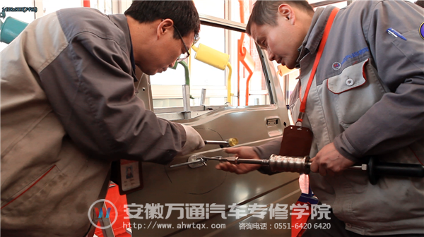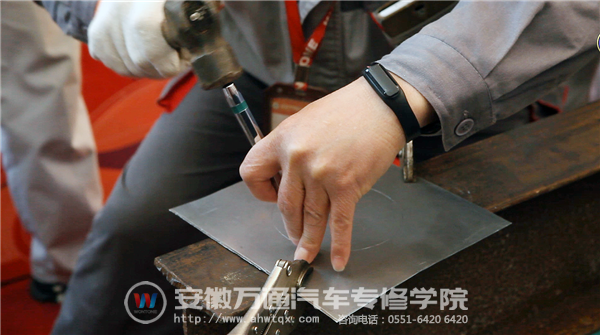 颁奖典礼结束后,在教学楼进行了一场别开生面的万通大能手绝技展示活动。朱磊老师的轮毂彩印、杨久柱老师及盛敏杰老师的车门凹陷无痕修复、姚永高老师手工钢板做圆等绝技展示,他们用多年的汽修知识经验,用熟练的技能,向同学们展示了如何将理论运用到实践中,并赢得了同学们阵阵掌声。
