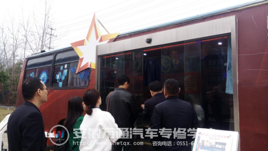 随后,安徽万通汽车专修学院领导各位贵宾参观本校的汽车科技博览中心,整洁大气的环境,宽敞明亮的艺术设计,琳琅满目的汽车零件设备,都给众人留下了深刻的印象。