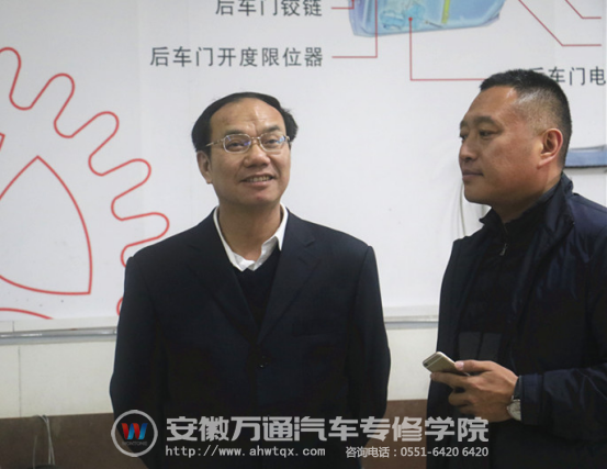 为了向各位贵宾详细介绍安徽万通汽车专修学院上课的场景和实训的环境,安徽万通汽车专修学院院长张俊良、副院长廖光宙等领导各位贵宾参观校园内各大实训中心。对于实训中心的整体设备、环境以及“理论+实践”的教学方式等,人社部《职业》杂志社社长黄卫来、安徽省人社厅职业能力建设处处长刘晓燕,安徽省职业技能协会副秘书长范申平等一行表示了高度的认可与赞同。