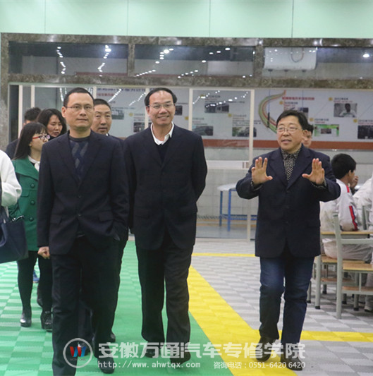 2017年3月20日下午15时30分,人社部《职业》杂志社社长黄卫来,安徽省人社厅职业能力建设处处长刘晓燕,安徽省职业技能协会副秘书长范申平等一行莅临我校参观访问,就学校的发展和运行情况、实训设备等进行参观和交流。安徽万通汽车专修学院院长张俊良、副院长廖光宙等学校领导陪同参观。