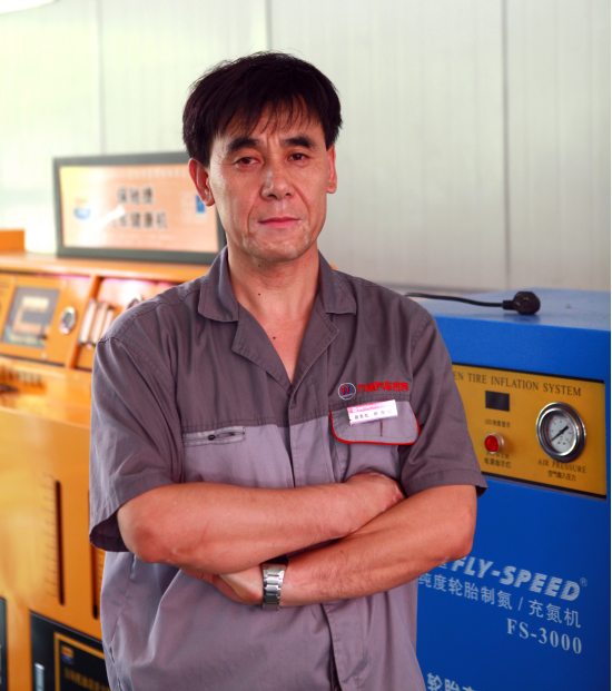 安徽万通时海峰老师正在进行轮胎氮气填充操作