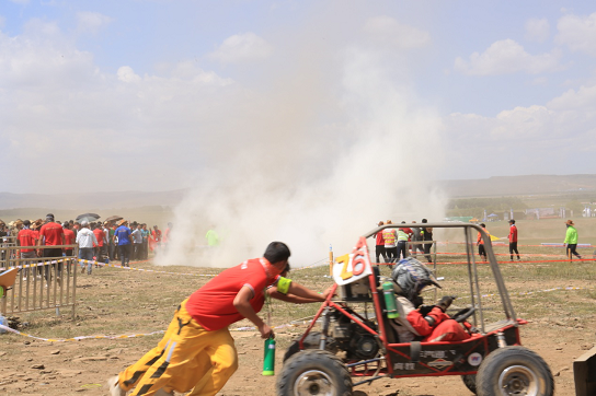 耐久赛一直是巴哈的重头戏,凭着单圈的成绩,万通汽车教育处于第三发车位。这次的比赛没有像以前一样鸣枪发车,而是击鼓发车。 草原擂动的鼓声交织着巴哈马达的轰鸣,点燃了整个赛场的激情。