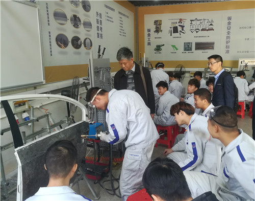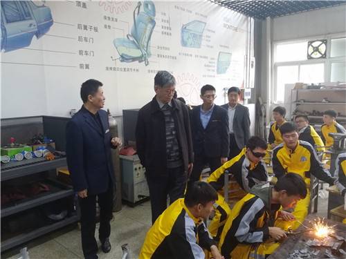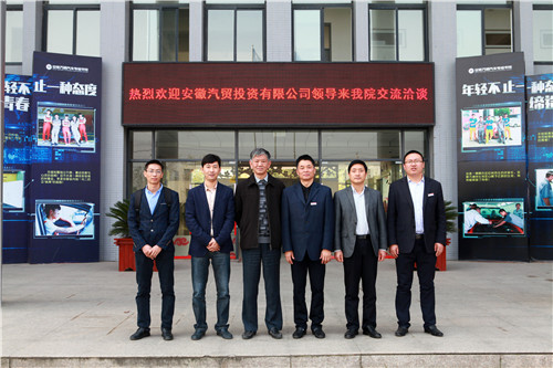 安徽汽贸投资有限公司售后总经理,人力资源总经理,售后技术总监,人力资源主任等一行人参观了校园环境及实训室,当看到同学们正在真车实训、一线操作,安汽贸的领导对我院技能培训表示刮目相看,并表示相对于其他职业院校,我院实训设备齐全,学生实践多。