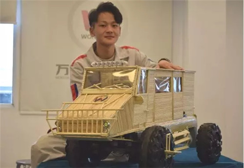 就在刚刚结束的万通质量季活动中,陆鑫伟独立完成的纯电动越野房车,受到了评委一致好评,以高票数摘得工艺品制作大赛冠 军。而这个作品并不是他唯一的作品,他还制作了游艇,等比例缩小的房屋等模型,每一个都精致非凡,体现了他出类拔萃的动手能力。