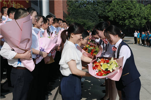 当天上午,迎着清晨的第一缕阳光,全校教职工和学生们在综合楼下集合。教职工身着正装,神情庄重;学生们井然有序,立正站好。