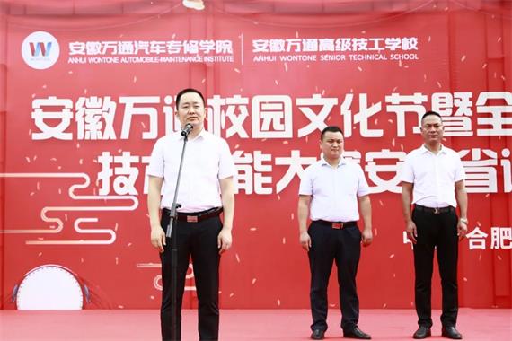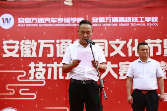 后,安徽万通高级技工学校校长陈成宣布本次安徽万通校园文化节暨全国新能源关键技术技能大赛安徽省选拔赛正式启动,陈院长号召全体师生提振“精气神”、练就“金刚钻”、当好“攀登者”,并对文化节和大赛寄予三点希望:希望大家更多地把好成绩“创”出来,更好地把真人才“练”出来,更快地把好经验“推”出来。