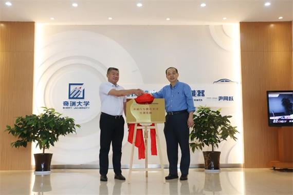 中国东方教育集团汽车事业部总经理陶青与奇瑞汽车股份有限公司副总经理李康为基地揭牌