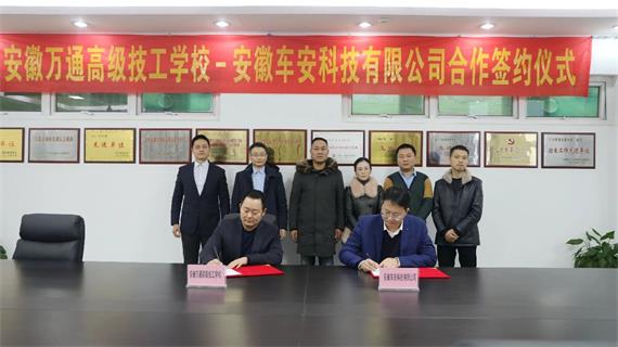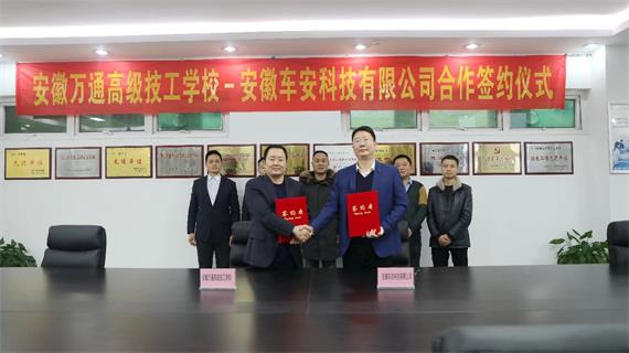 12月18日下午,安徽万通与安徽车安科技有限公司签订了协议,安徽万通高级技工学校校长陈成、校长助理许田、安徽车安科技有限公司负责人章涛林等领导出席了本次签约仪式。