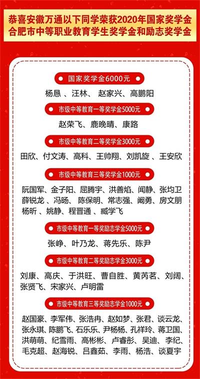 恭喜以上所有获奖同学,希望大家学会感恩、学会立志,发扬“自尊自信、自强自立”精神,用好奖金,杜绝挥霍浪费,珍惜到手的每一分钱,树立远大的理想,明确学习目标,奋力拼搏,以德博学,完成学业,在学校和教师的精心培育下,把自己磨练成品学兼优的合格实用技术人才,为将来更好的回报祖国、回报社会打下坚实的基础。
