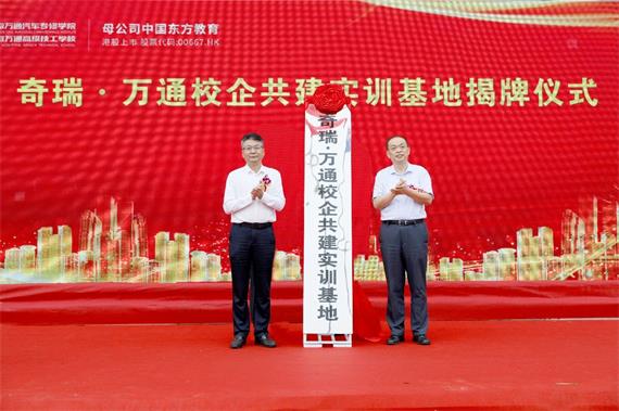 6、奇瑞·万通校企实训基地揭牌 2020年9月10日,奇瑞·万通校企实训基地揭牌暨校企共建实训车辆赠送交接仪式在安徽万通隆重举行,此次校企实训基地的揭牌,开启了双方合作新的篇章,我们会精心组织,强化管理,确保双方合作的实效性,形成过程共管,成果共享,责任共担,互补共赢的紧密合作机制,切实惠及更多万通学子,实现学校、企业、学生三方共赢的良好局面。