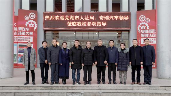 芜湖市人社部门及奇瑞公司领导一行抵达安徽万通后,在中国东方教育及院校领导的陪同下参观了院校的教学成果、实训基地、奇瑞·万通校企共建基地以及新能源大赛省赛集训基地,贾局长一行对万通完善的教学硬软件建设给予了称赞,并对万通在新能源汽车领域和中取得的成绩进行了肯定。