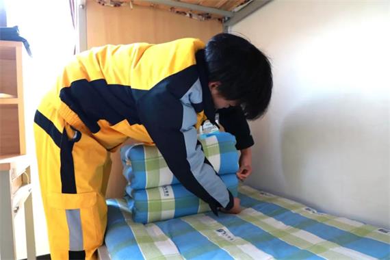 内务训练在万通平常的宿舍管理中,是一项长期坚持的习惯。干净、整洁的宿舍环境能够让学生体会到家的温馨,创造一个良好的学习生活环境。细节决定成败,内务整理可以很好的养成学生在学习和生活中不仅要努力,更要注重每一个细节。
