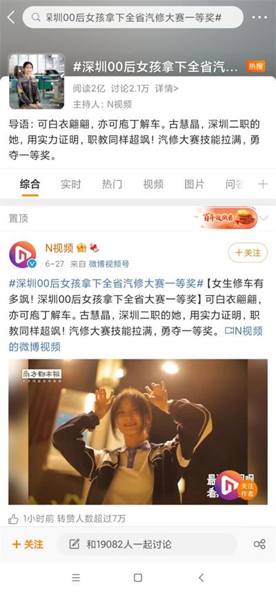 近日,00后女孩古慧晶拿下广东省汽修大赛一等奖的话题,引起了网友的广泛关注与热议。