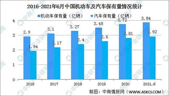 据公安部统计,截至2021年6月,全国机动车保有量达3.84亿辆,其中汽车2.92亿辆;全国有74个城市的汽车保有量超过100万辆,同比增加5个城市,33个城市超过200万辆,18个城市超过300万辆。