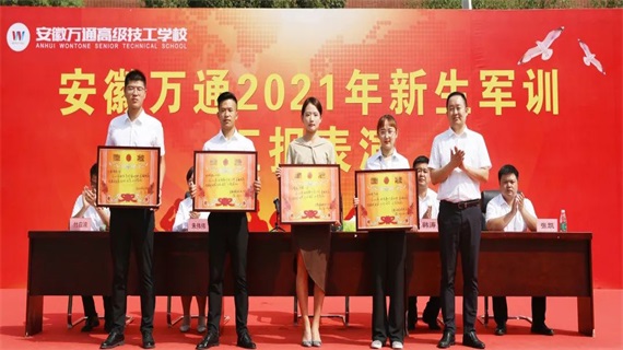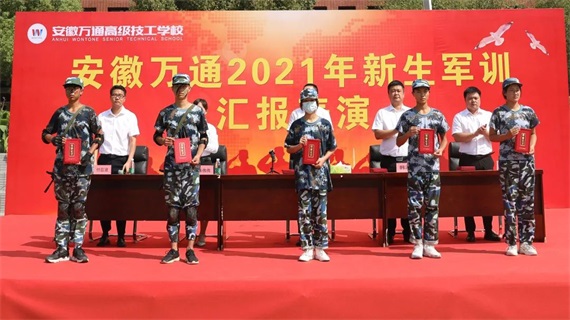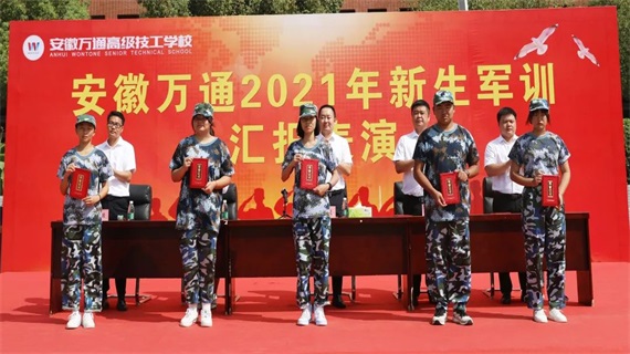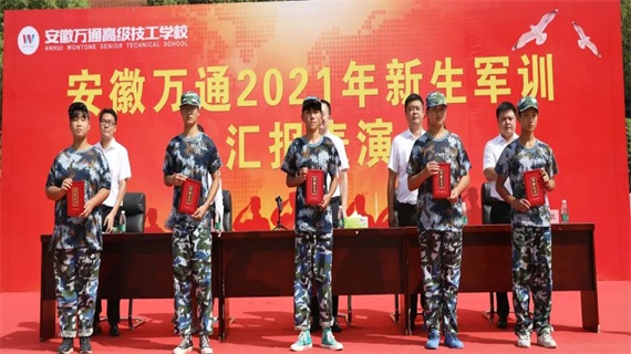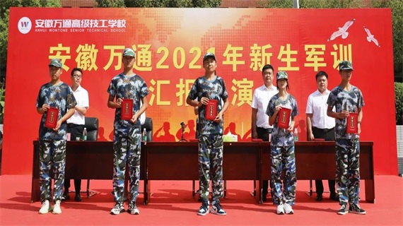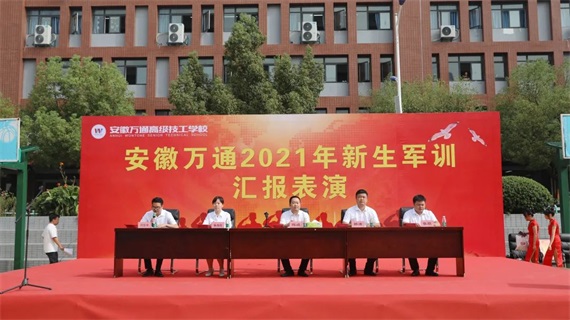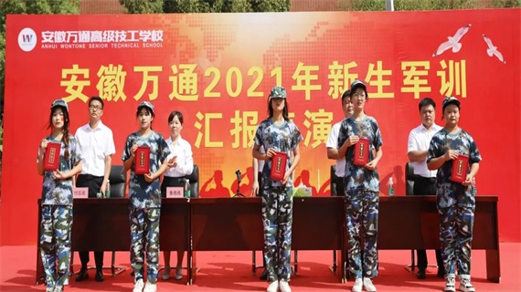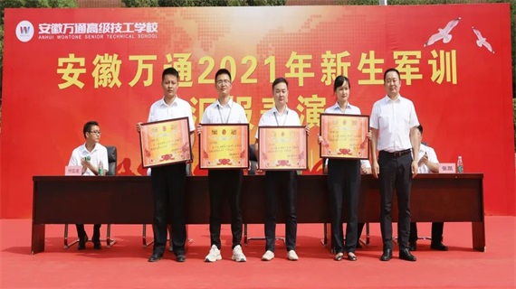 9月30日上午,安徽万通高级技工学校2021级第二批新生军训成果汇报暨总结表彰大会在篮球场举行,安徽万通校长陈成、学生处副主任韩涛、汽车工程系主任付应波、综合系主任朱伟伟、轨道系主任张凯等领导出席了此次活动。