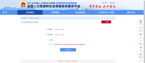 1.人力资源社会保障部网站(http://rsrc.mohrss.gov.cn/jxxxcx)