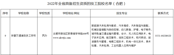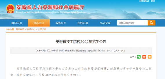 近日,安徽省人力资源和社会保障厅发布了安徽省技工院校2022年招生公告。对招生计划及对象、报名及入学、办学层次及培养目标、培养方式、助学及就业促进政策、毕业待遇等方面做了解释说明,并公布了安徽省具备招生资质的技工院校名单,安徽万通高级技工学校位列其中。
