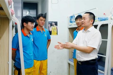 为进一步掌握新生到校安顿情况,了解学生住宿和生活环境,及时解决新生入学后的各项问题,8月5日晚,我校校长陈成、校区主任张庆及校区主管和老师们带着甘甜可口的西瓜深入宿舍,看望和慰问2020级新入校的学生们。