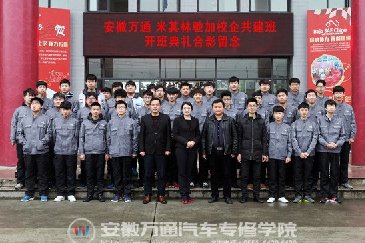 加强,培养汽修精英。2017年3月24日,安徽万通——米其林驰加校企共建班开班典礼隆重举行。安徽万通汽车专修学院教学处主任张庆、创就业指导中心主任赵辉及米其林驰加领导出席。