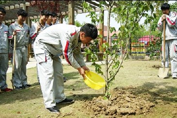 4月22日是第43个世界地球日,为唤起师生关注地球生态、保护校园环境的意识,安徽万通汽车专修学院开展师生义务植树活动。